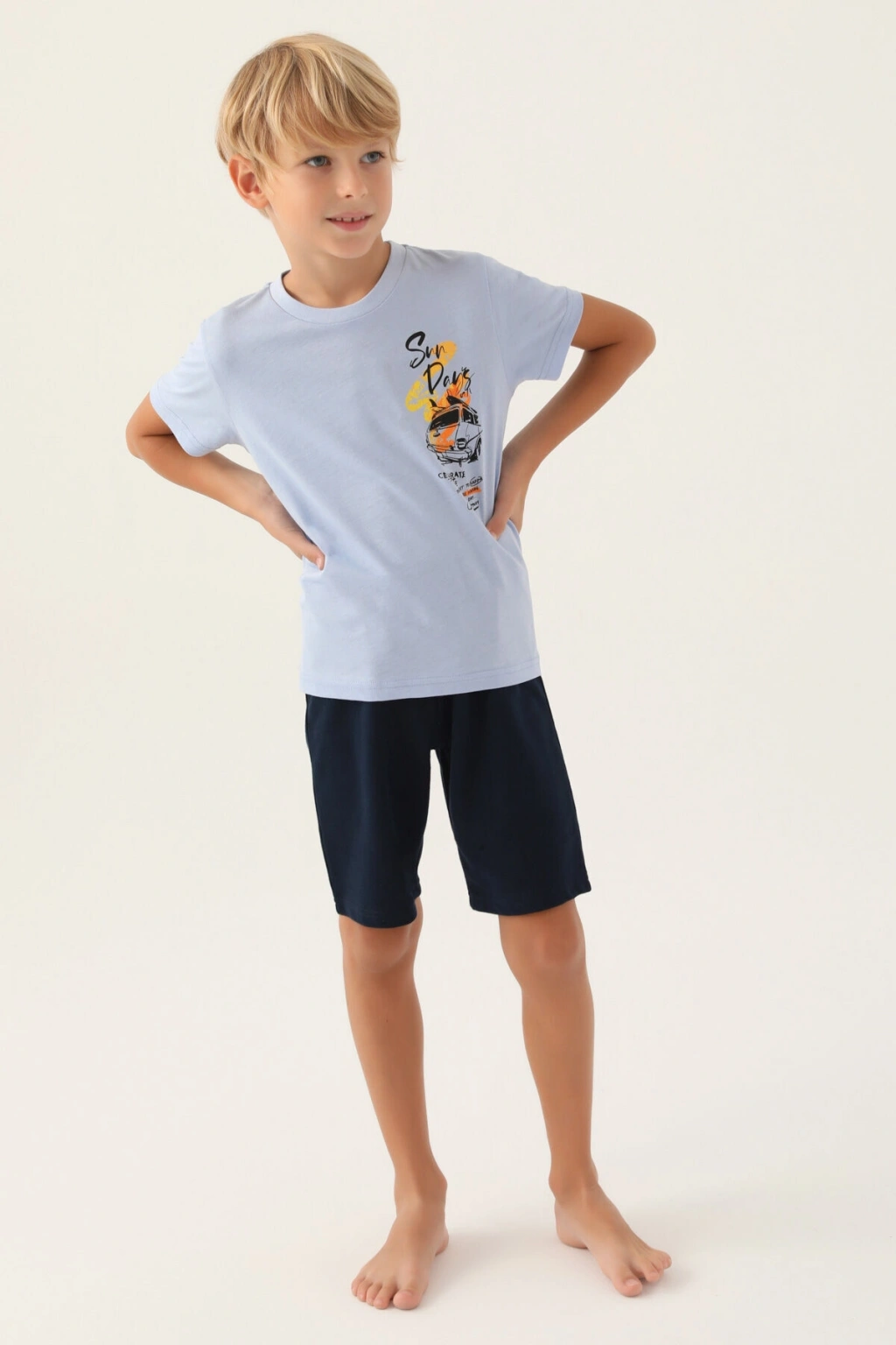 Bu takımın kumaş/materyal bilgisi belirtilmemiştir; ancak, Arnetta kalitesi ile sunulan bu ürün, hafif ve nefes alabilir yapısıyla yaz aylarında serin kalmanızı sağlar. Baba oğul aktivitelerinde, plajda veya evde rahatça giyilebilecek bir tasarıma sahiptir.
