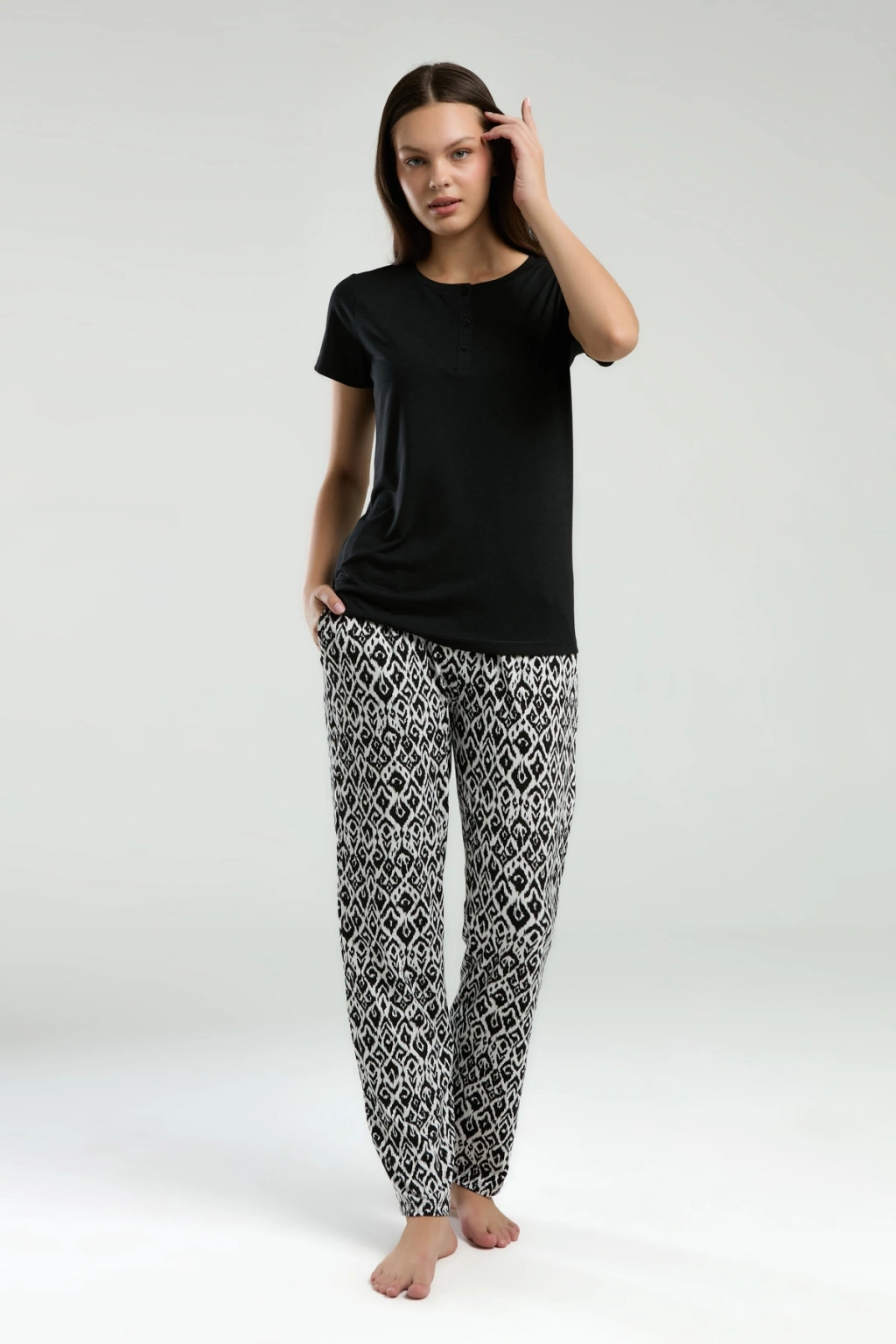 Arnetta Kadın İkili Takım, şıklığı ve rahatlığı bir arada sunarak her anınızı özel kılmak için tasarlandı. Hem günlük kullanımda hem de evde dinlenirken tercih edebileceğiniz bu takım, tüm yaş gruplarındaki kadınlar için idealdir.