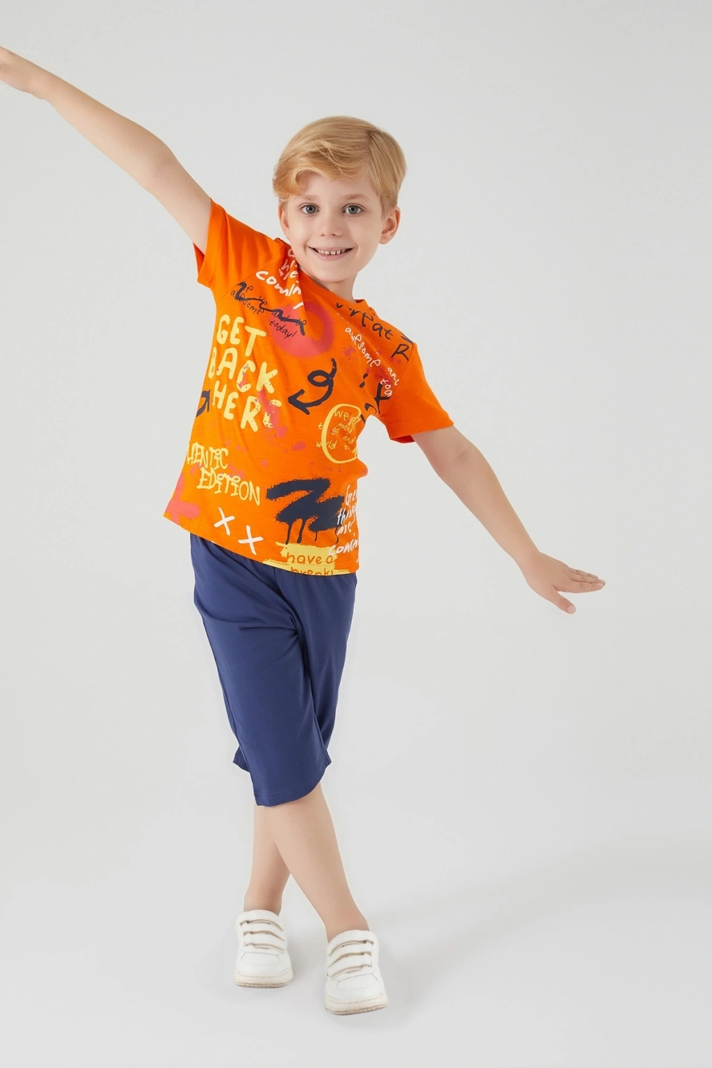 Kumaş/materyal bilgisi belirtilmemiştir, ancak genel olarak çocuk giyimi için uygun, hafif ve rahat kumaşlardan üretilmiştir. Bu kapri takım, günlük aktivitelerde, oyun saatlerinde veya aile buluşmalarında rahatlıkla kullanılabilir. Çocuklarınız için konforlu ve şık bir seçenek arıyorsanız, Rolypoly Erkek Çocuk Kapri Takım tam size göre!