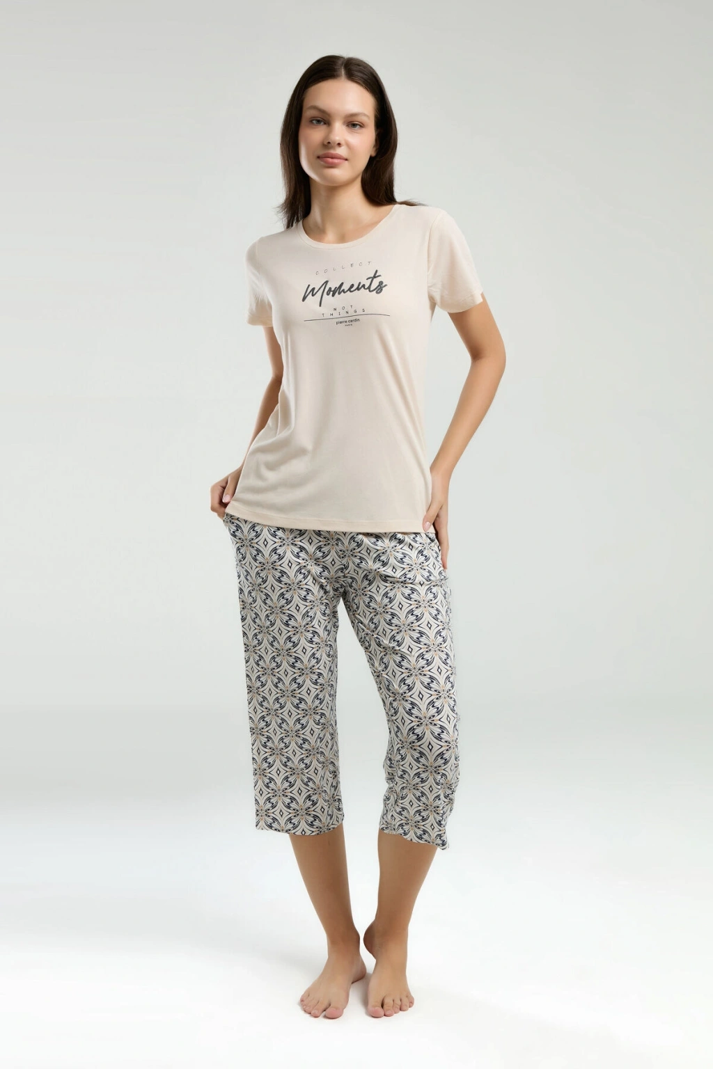 Kumaş bilgisi belirtilmemiş olsa da, Pierre Cardin markası kalitesini her zaman ön planda tutar. Bu kapri takım, hem günlük kullanıma hem de spor aktivitelerine uygun yapısıyla her anınızda sizinle.