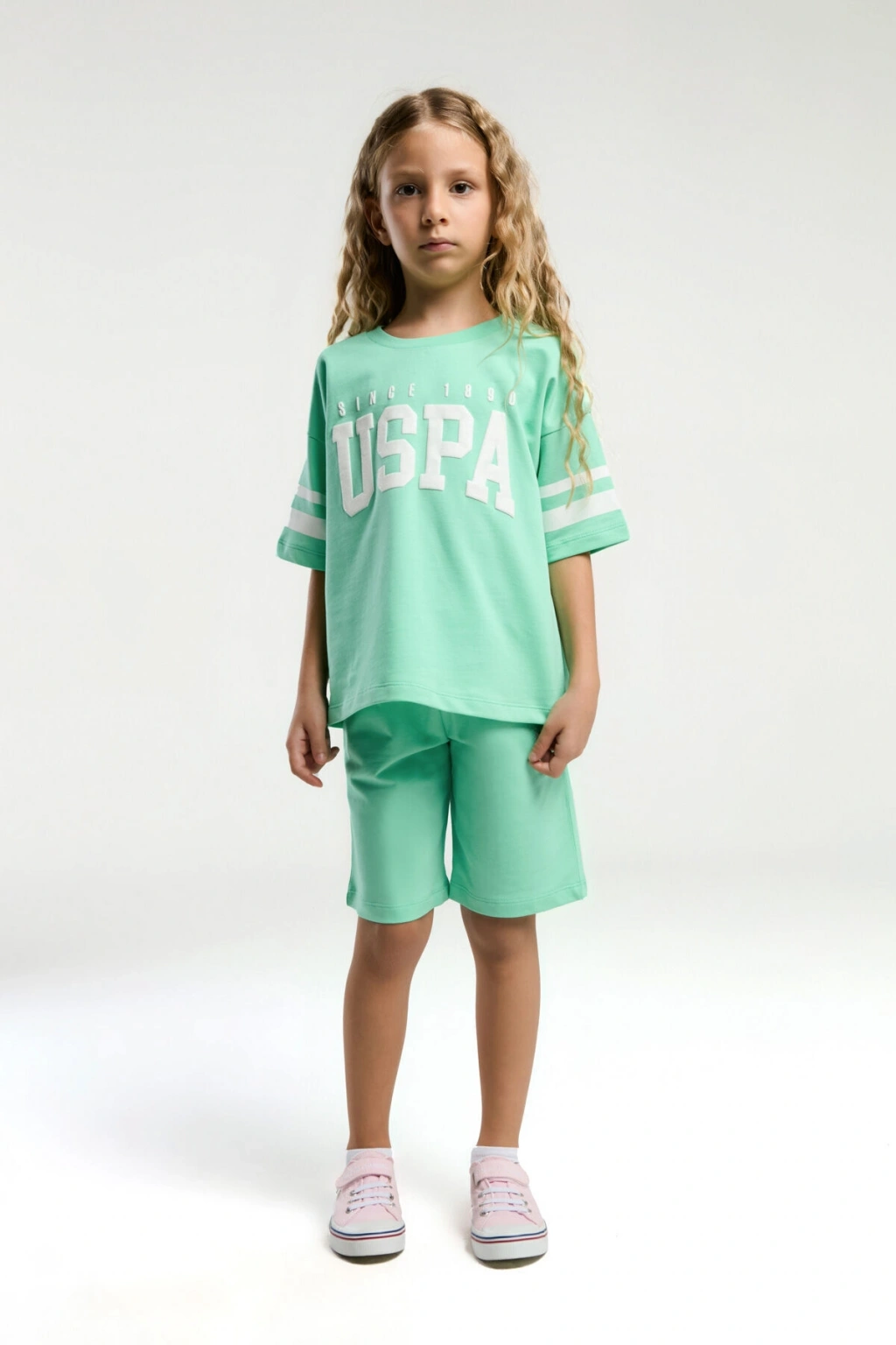 U.S. Polo Assn. markasının Kız Garson Bermuda Takımı, şıklığı ve konforu bir arada sunuyor. Çeşitli renk seçenekleriyle her yaş grubuna hitap eden bu takım, yaz aylarının vazgeçilmezi olmaya aday!