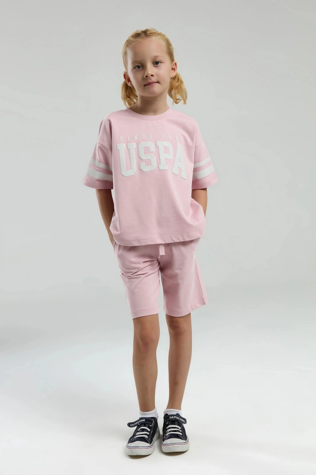 U.S. Polo Assn. markasının Kız Garson Bermuda Takımı, şıklığı ve konforu bir arada sunuyor. Çeşitli renk seçenekleriyle her yaş grubuna hitap eden bu takım, yaz aylarının vazgeçilmezi olmaya aday!