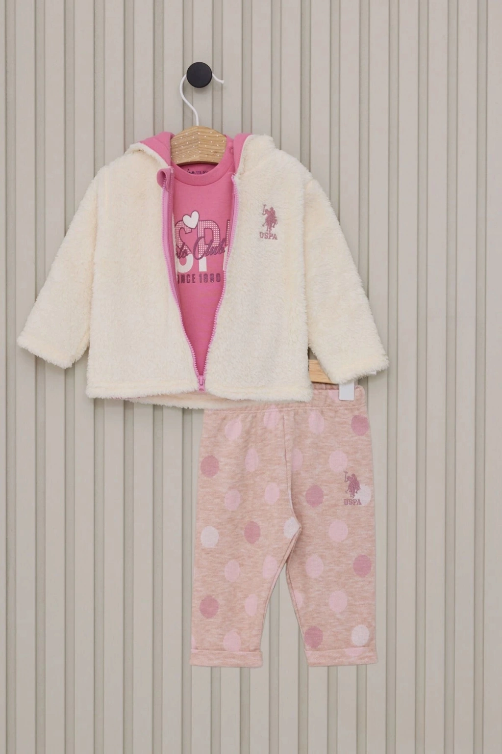 U.S. Polo Assn. kalitesiyle bezenmiş US POLO KIZ BEBEK 3'lü takım, miniklerin rahatlığı ve şıklığı için ideal bir seçim! Hem günlük kullanımda hem de özel günlerde tercih edebileceğiniz bu takım, çocuklarınızın stilini tamamlıyor.